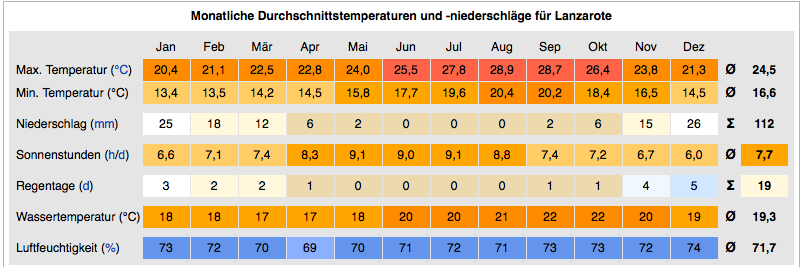 Das Klima auf Lanzarote zu Ihrer Urlaubszeit